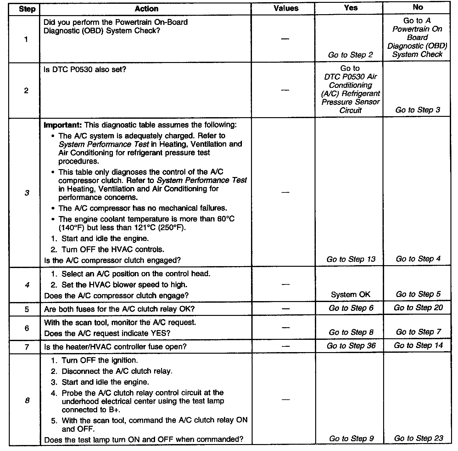3. This step tests if the A/C compressor clutch is engaged when there is no command to be engaged.