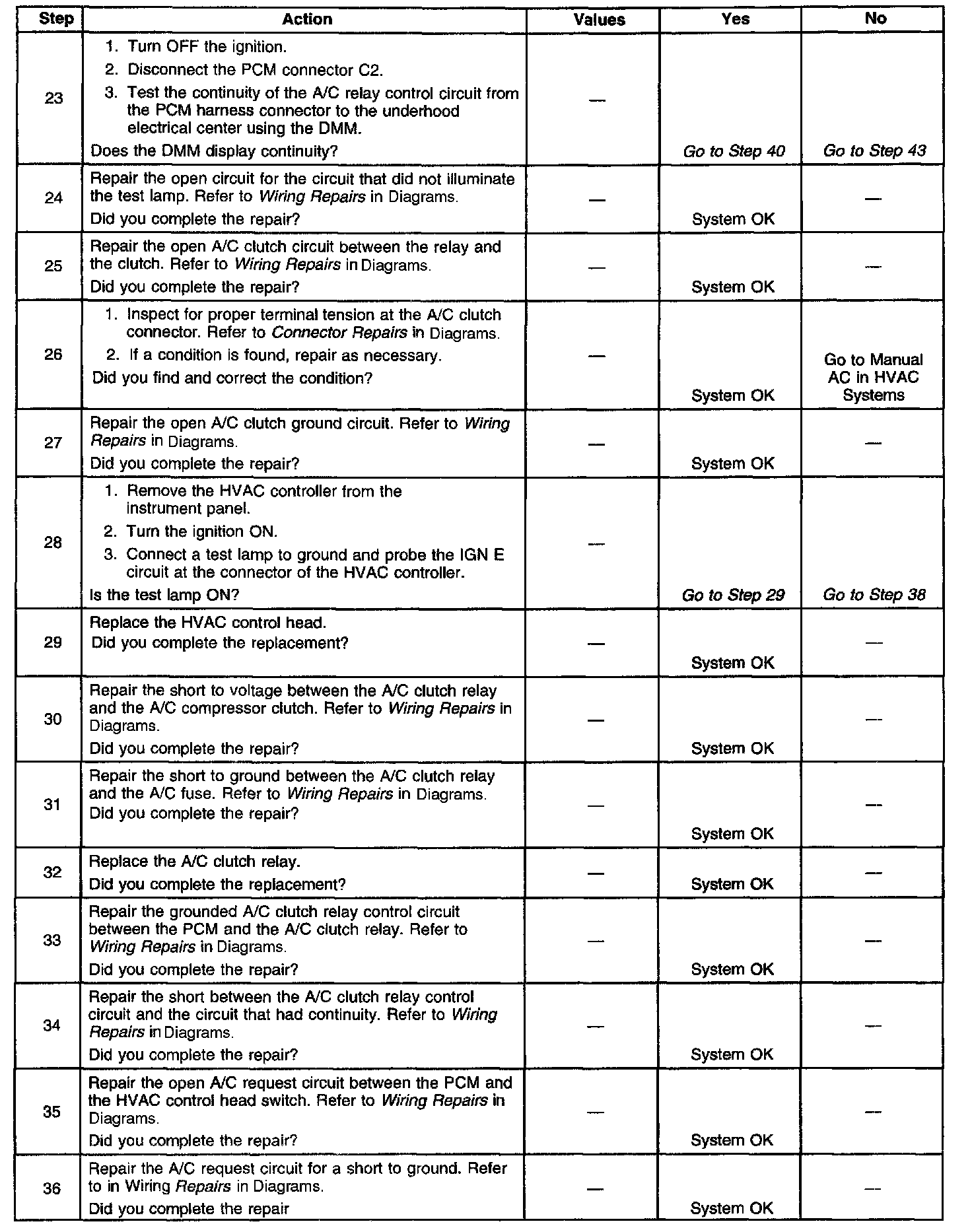 18. This step tests for a short to ground on the A/C relay control circuit.