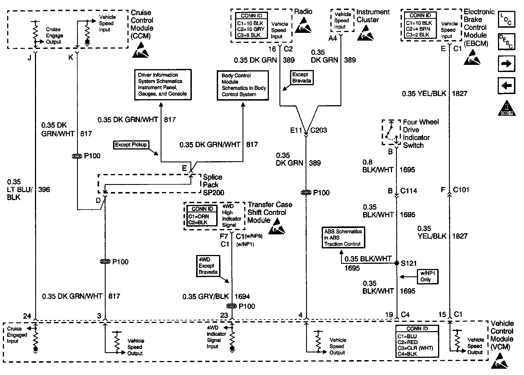 Engine Control Schematics: Vehicle Speed Signal, Transfer Case Shift Control Module And 4WD Indicator Switch: