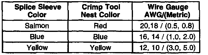 5. Select the proper splice sleeve (2) and the required crimp nest tool, refer to the Crimp and Seal Splice Table.