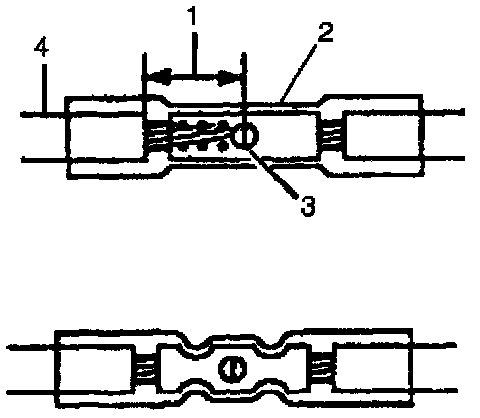 9. Insert the wires into the splice sleeve until the wire hits the barrel stop. The splice sleeve has a stop in the middle of the barrel in order to prevent the wire from passing through the splice (3).