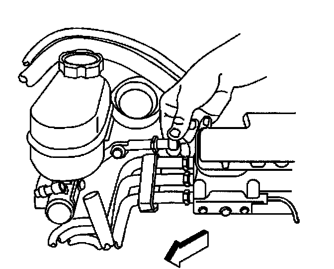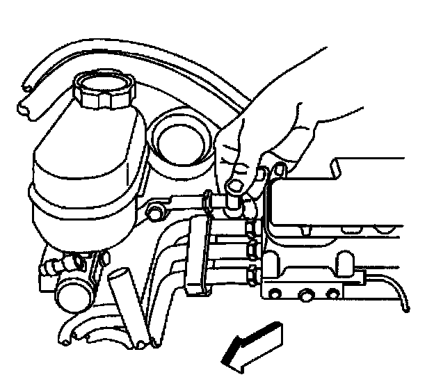 2. Remove the fluid level sensor (1). Use a needle nose pliers in order to compress the locking tabs at the opposite side of the master cylinder.