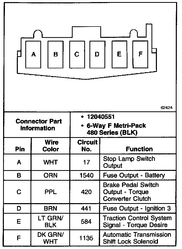 Stoplamp Switch Connector (Automatic Transmission Only):