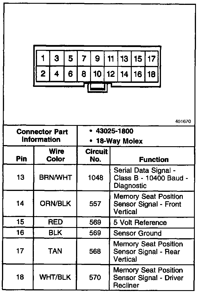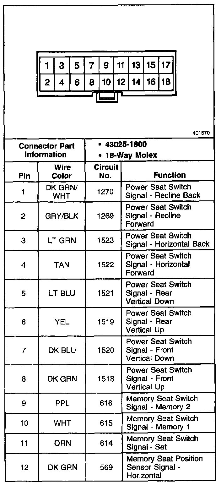Seat Adjuster Memory Module,Connector C1 (Part 1 Of 2):