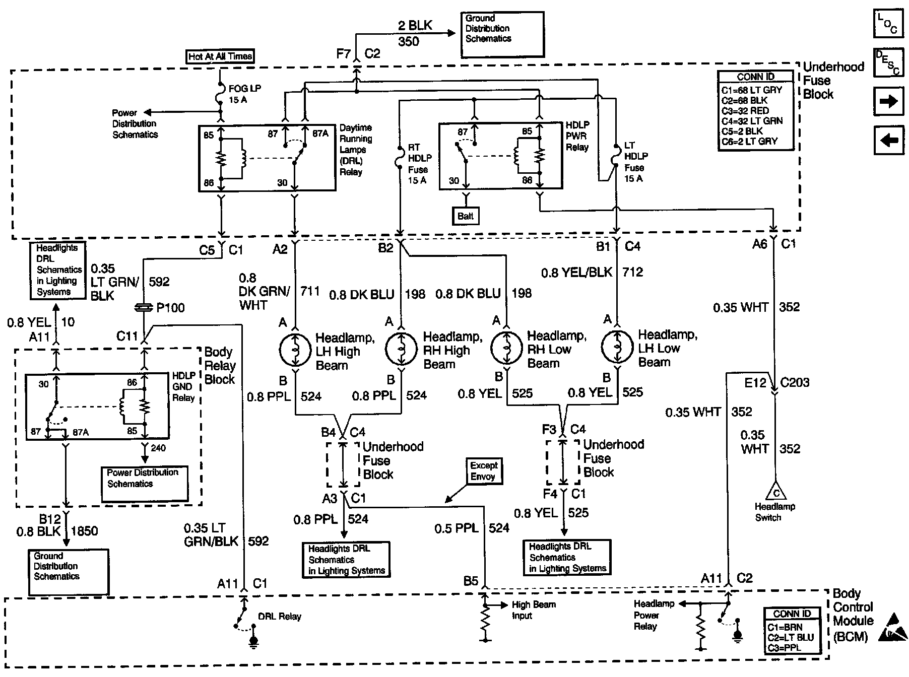Body Control Module Schematics: Headlamps (Except Envoy):