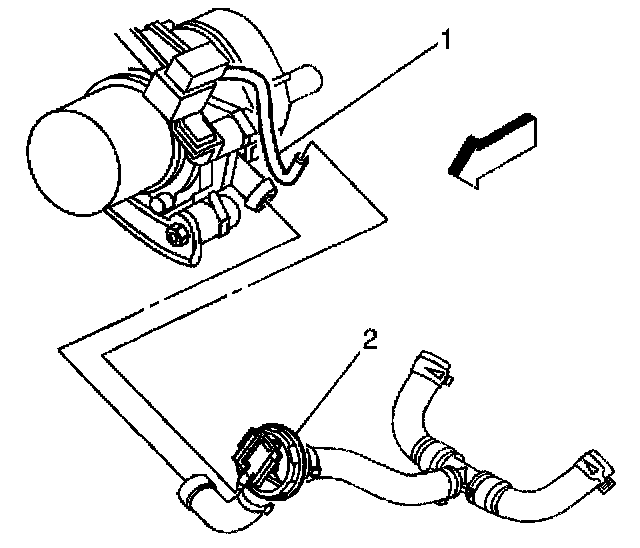 7. Disconnect the vacuum hose (1) from the shut-off valve (2).