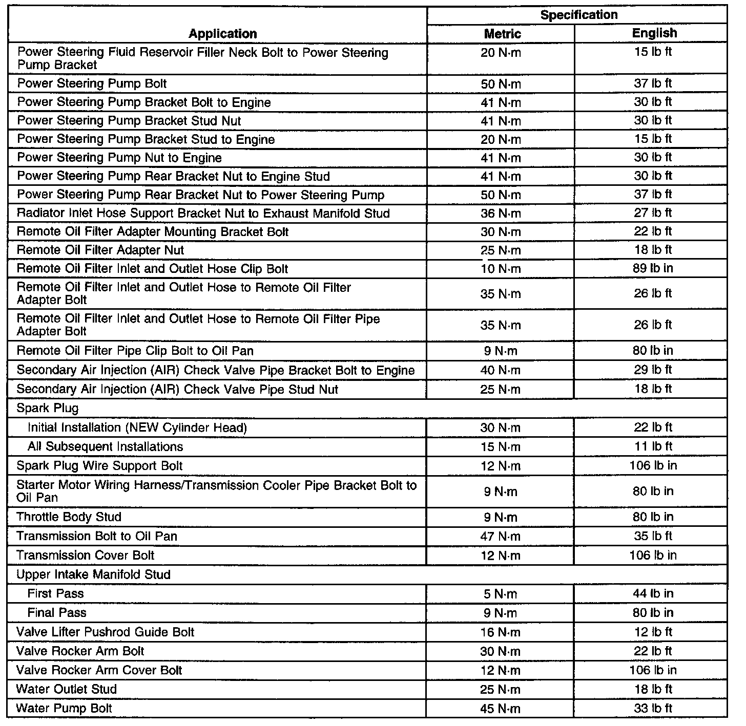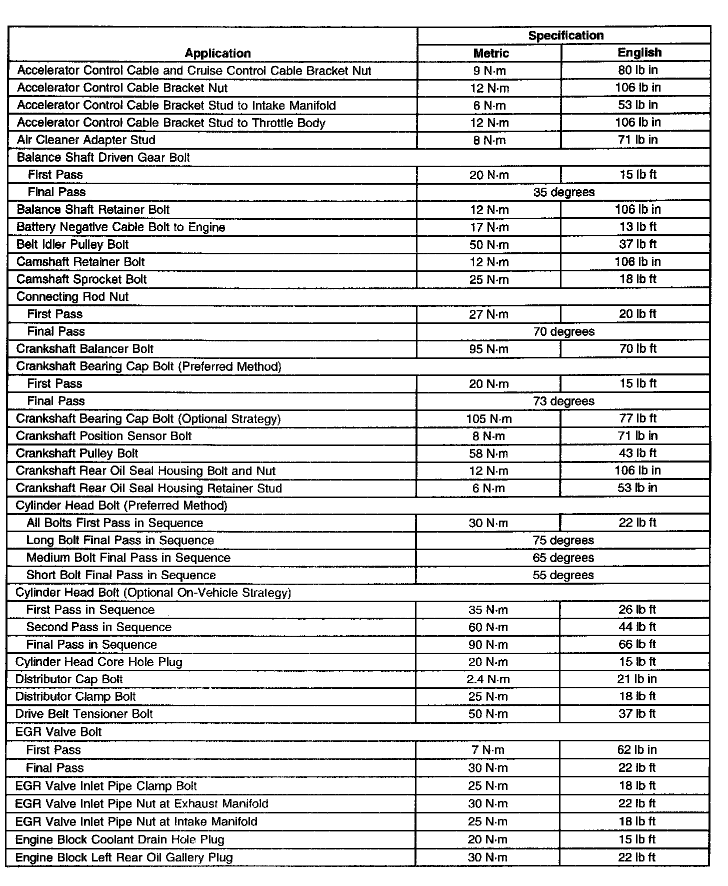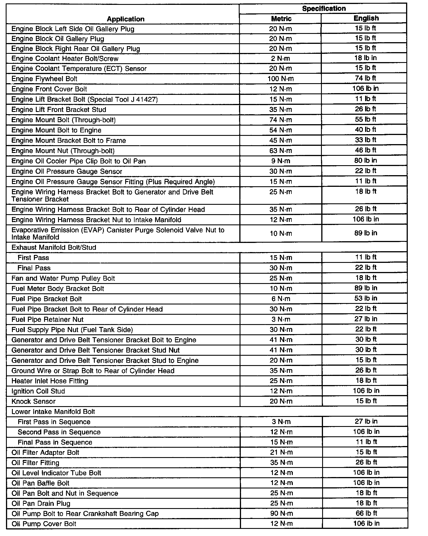 Fastener Tightening Specifications