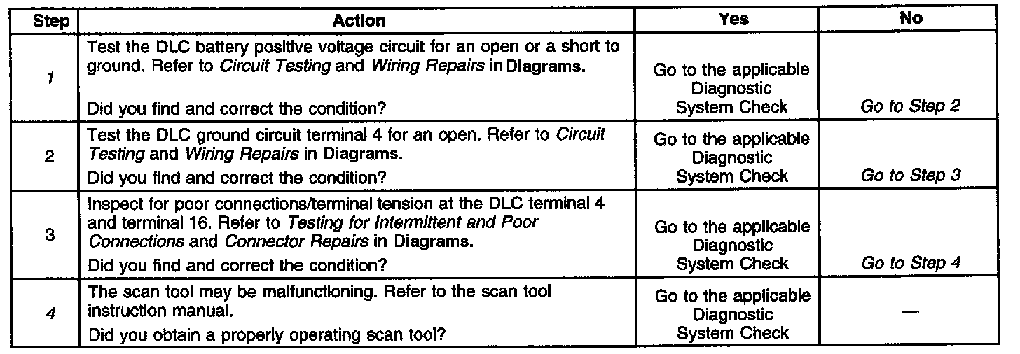 4. The DLC battery positive voltage and ground circuits are functioning properly. The malfunction must be due to the scan tool.