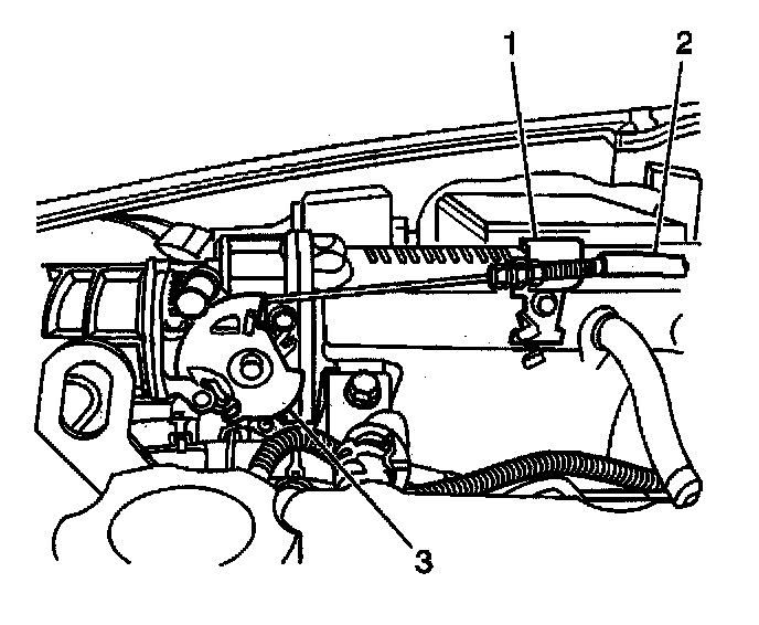 21. Install the accelerator cable to the throttle body bellcrank (3). Adjust the accelerator cable as necessary. Refer to Accelerator Controls Cable Replacement.