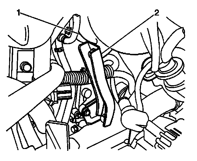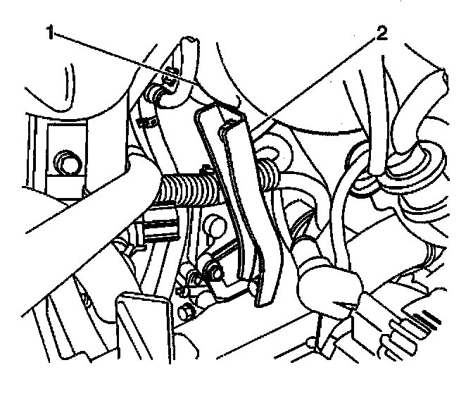 9. Remove the accelerator cable (2) from the accelerator cable bracket (1).