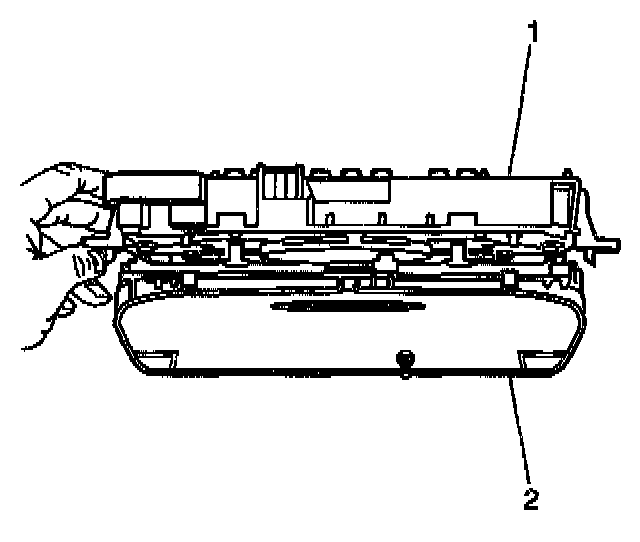 2. Install the instrument cluster lens and bezel assembly (2) to the instrument cluster (1). Ensure that the plastic retaining tabs are fully engaged.