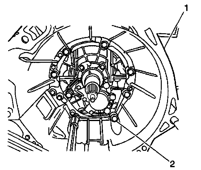 6. Remove the eight bolts from the input shaft bearing retainer (1) .