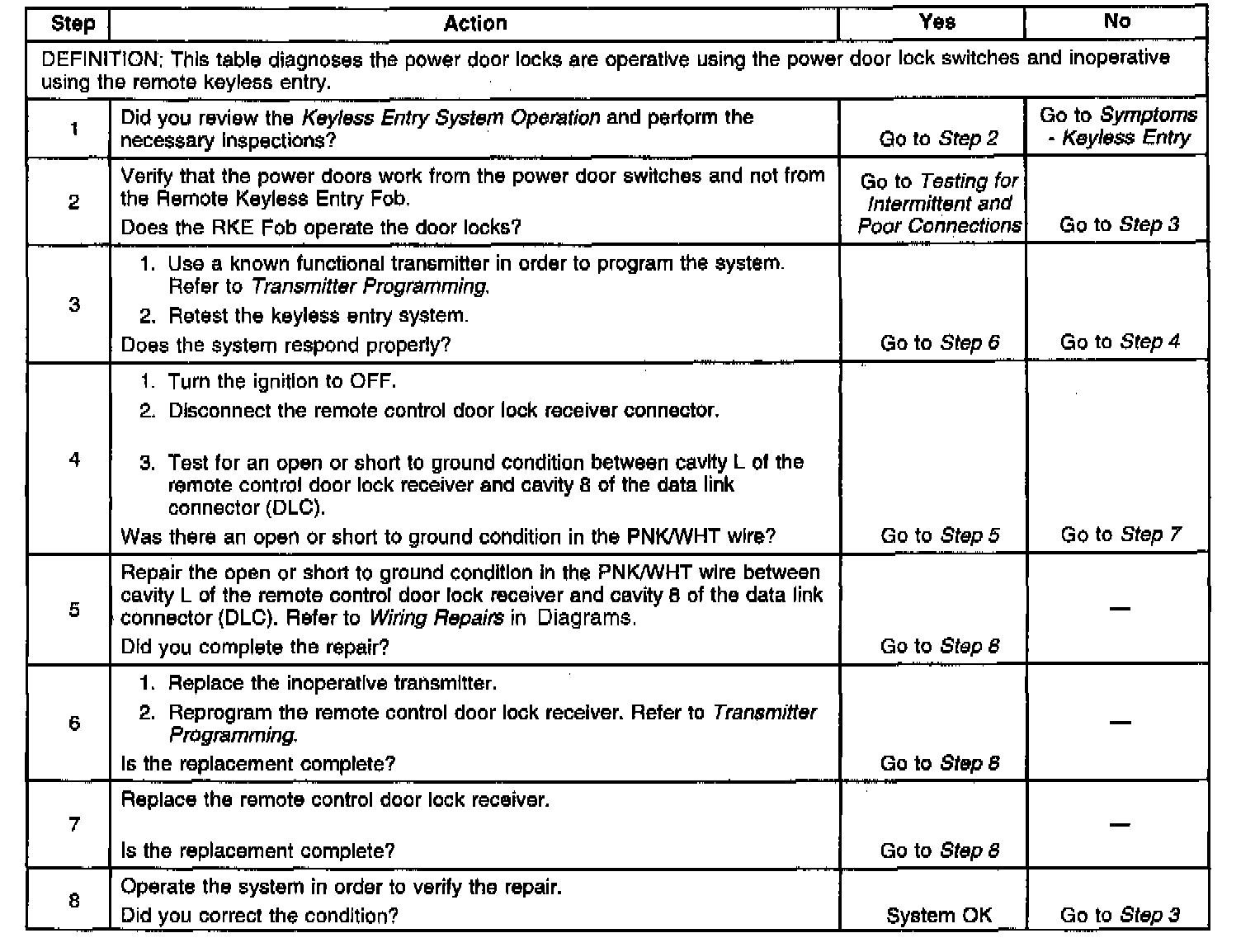 Keyless Entry System Inoperative: