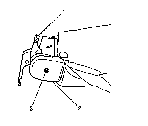 3. Install the rear seat recliner outside lower finish cover (2) to the rear seat recliner (1). Secure the cover with the screw (3).