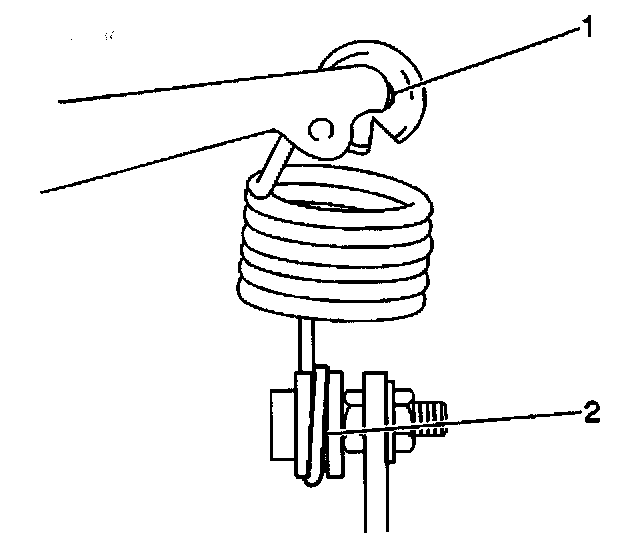 1. Apply multipurpose grease to the upper pivot point (1) and the lower pivot point (2) of the spring.