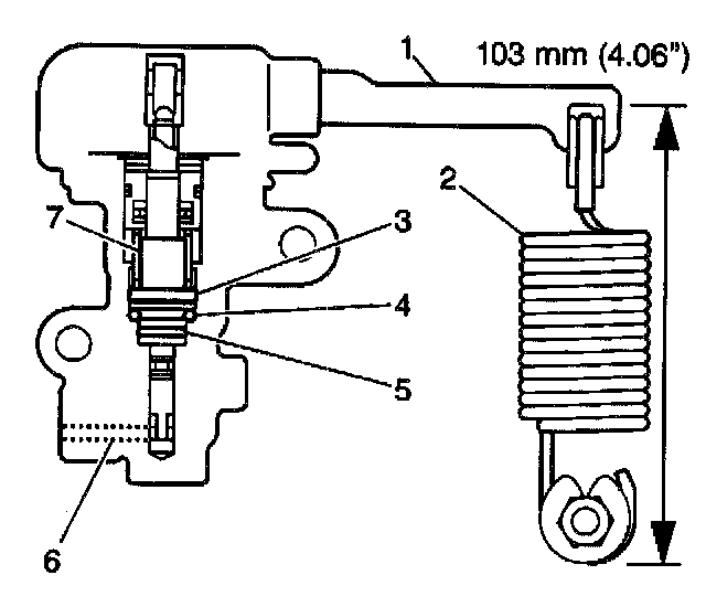 12. Push up the LSPV lever (1) with your finger until the lever stops. Measure the length of the coil spring (2).