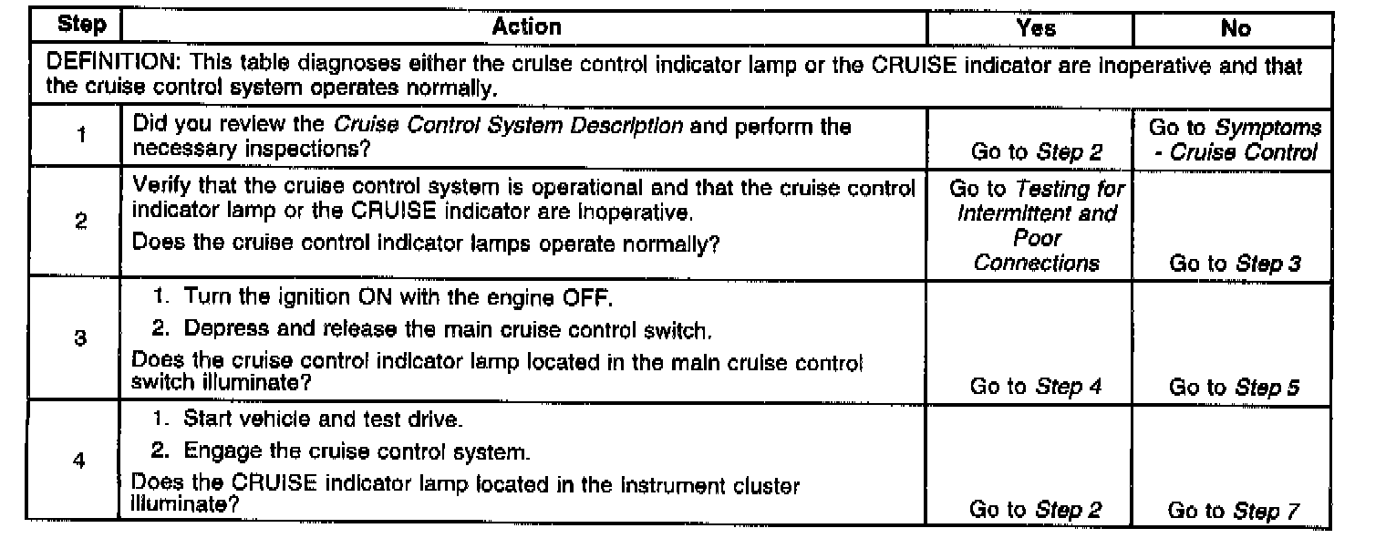 Cruise Control Indicator Lamp Inoperative: