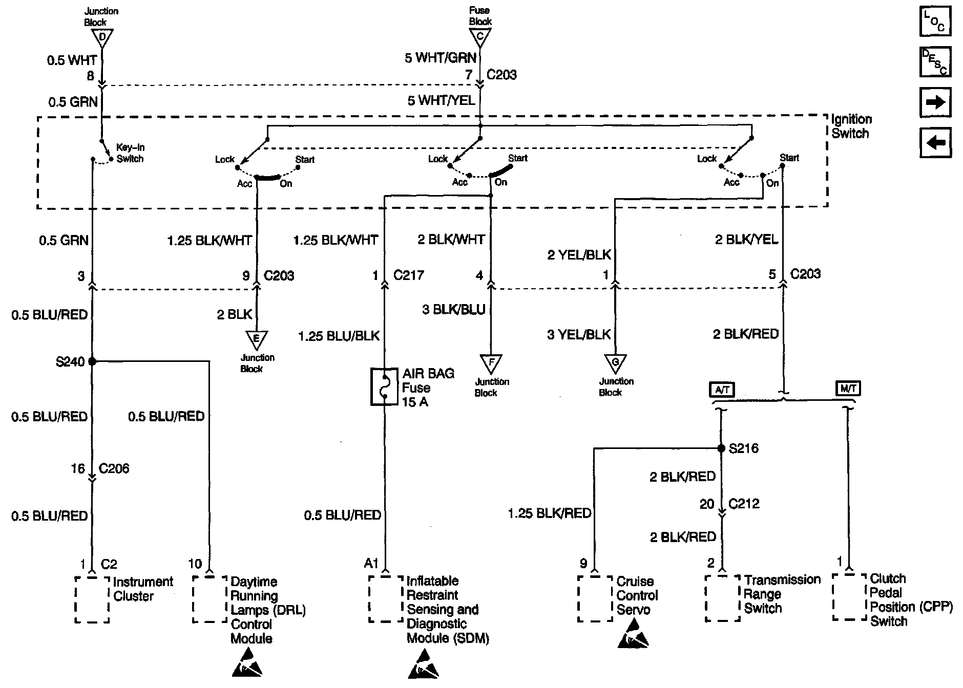 Power Distribution Schematics: Ignition Switch And SIR Fuses: