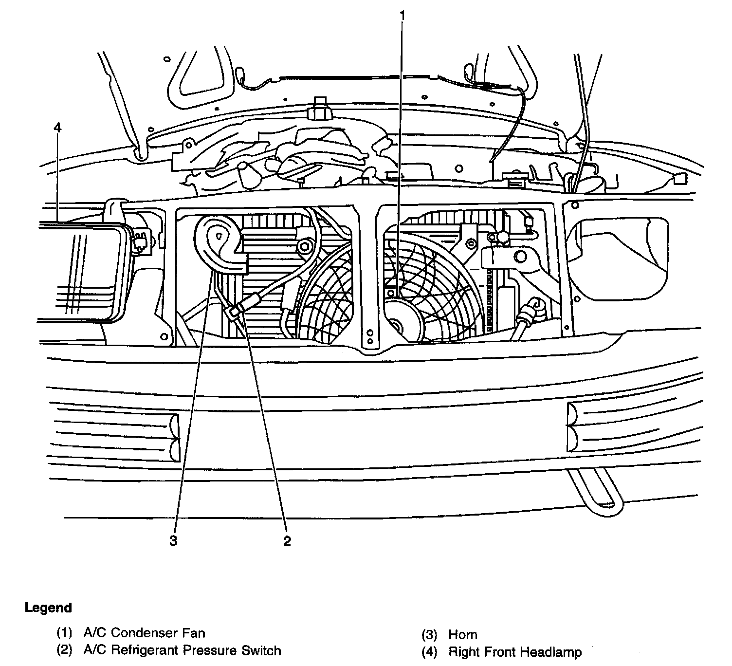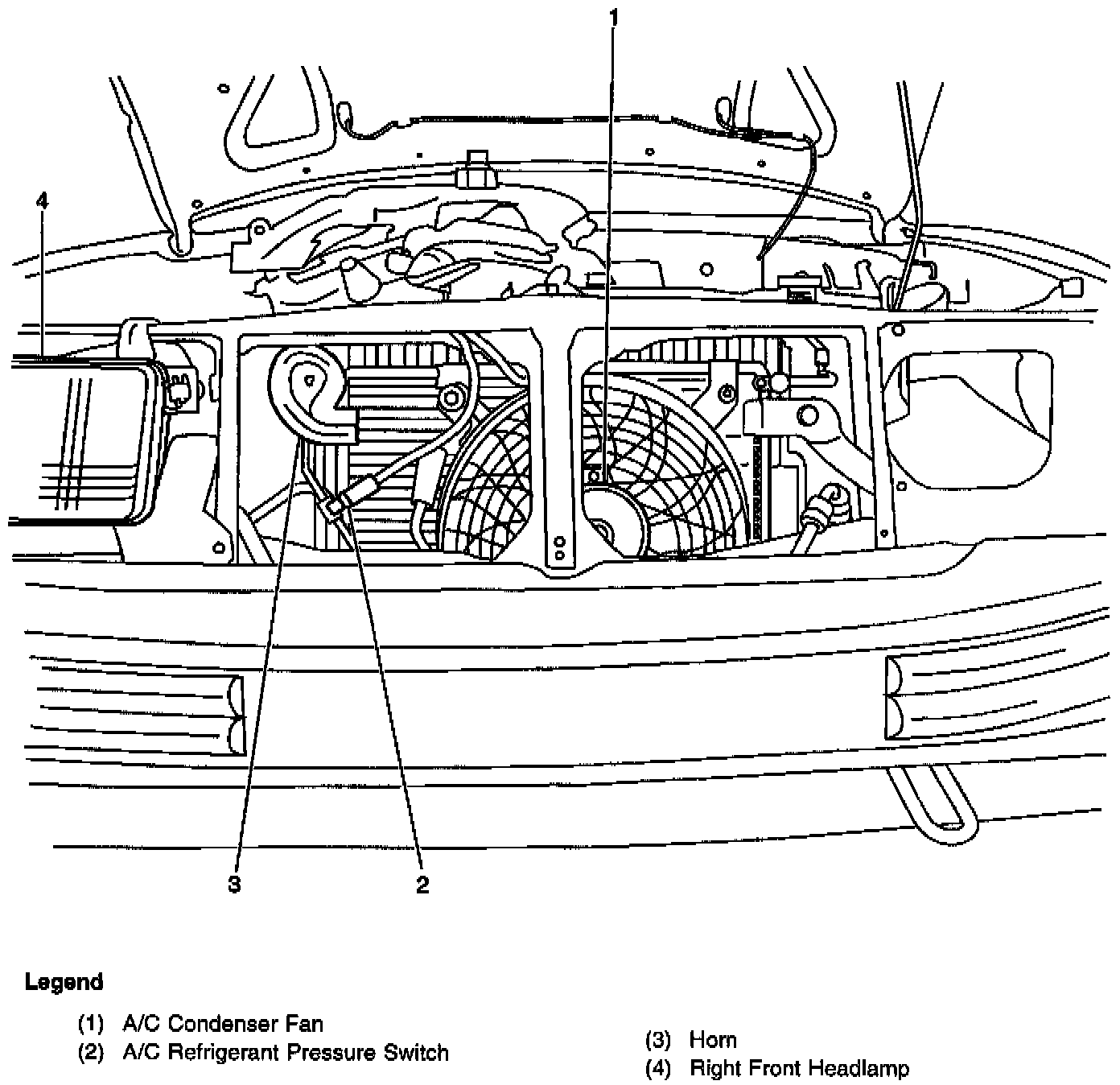 Between the grille and the radiator on the right side