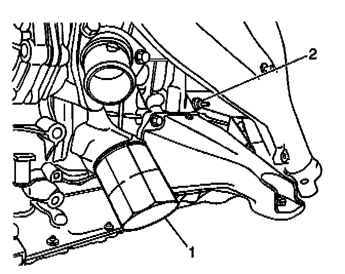 The engine oil pressure switch (2) is located in the engine block beneath the exhaust manifold and to the right of the exhaust manifold lower support bracket.