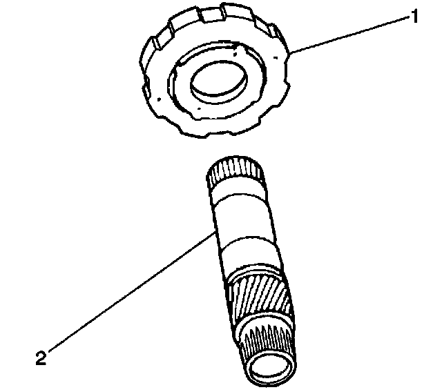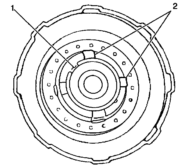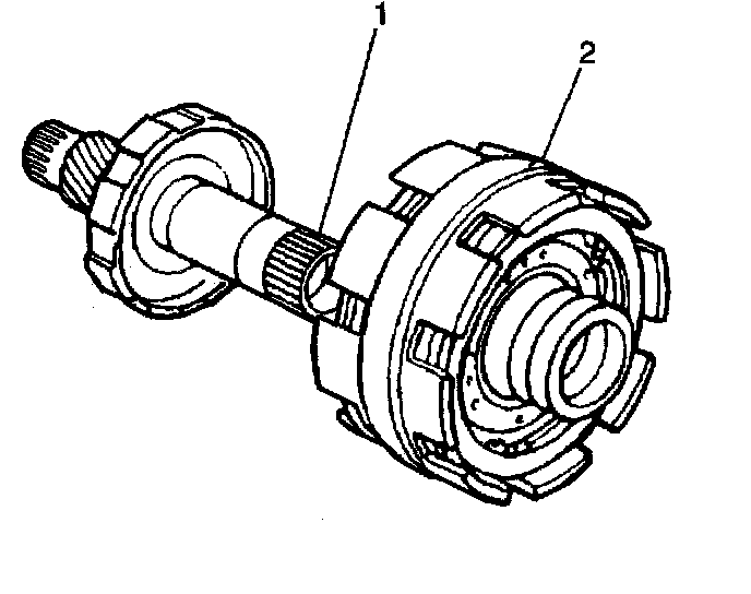 19. Remove the B2 brake hub assembly (1) from the planetary sun gear (2).