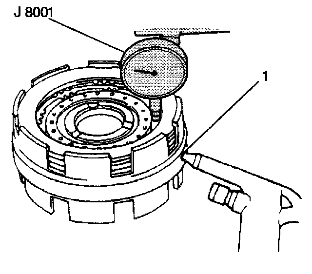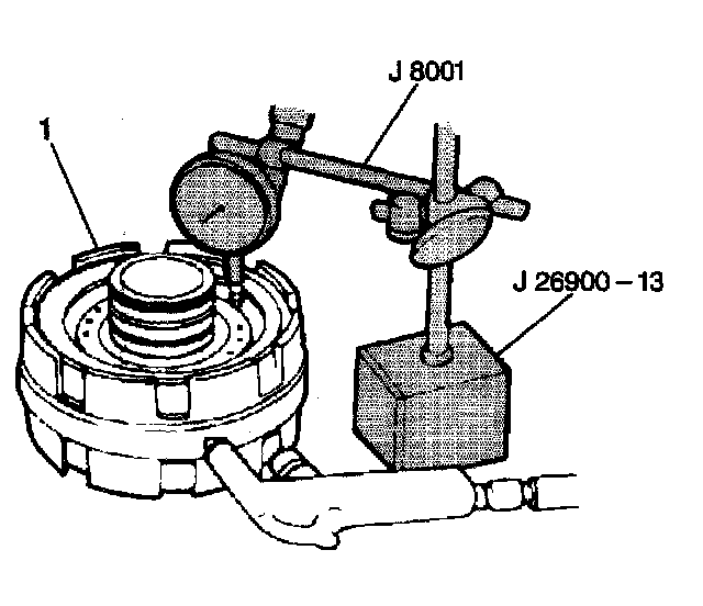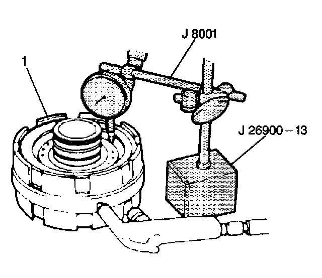 3. Measure the B1 brake piston stroke using J 8001 and J 26900-13: