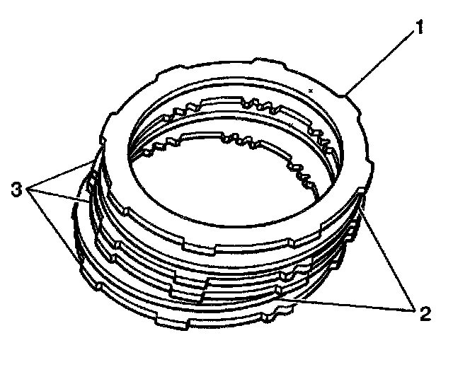 ^ Apply 392-785 kPa (57-114 psi) of air pressure into the second left overdrive case fluid passage (1).