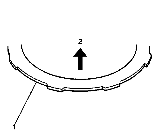 Important: Do not align the snap ring opening with B2 brake piston return spring retainer lug (2) during the next step.