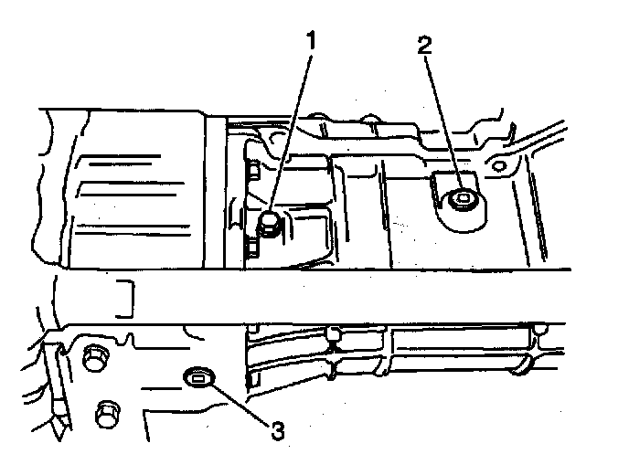 15. Remove 2 bolts (2) from the rear transmission mount.