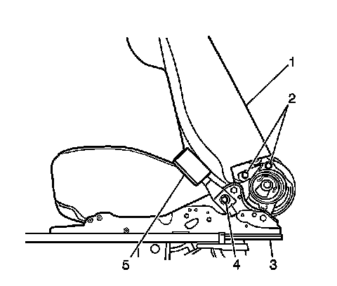 1. Remove the front seat. Refer to Front Seat Replacement - Bucket (Front Seat Replacement - Bucket) .