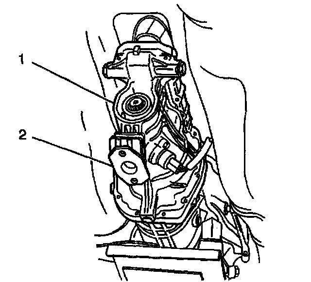 1. Install the rear transmission mount (2) to the extension case (1). Secure with 1 bolt.