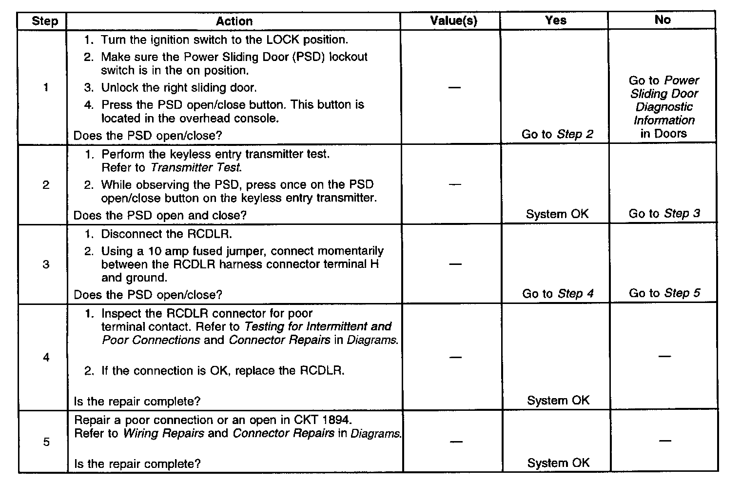 Power Sliding Door Open/Close Inoperative With Transmitter