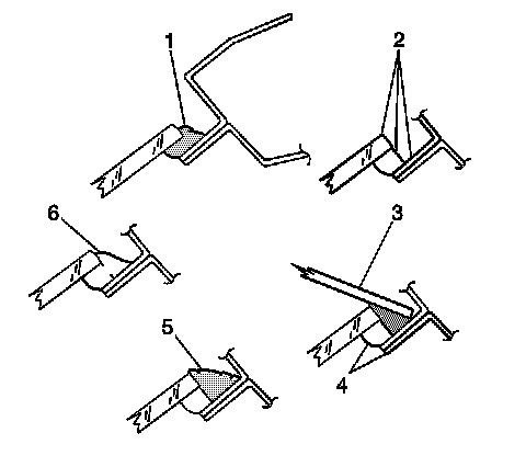 7. Apply the urethane adhesive material at the following locations: