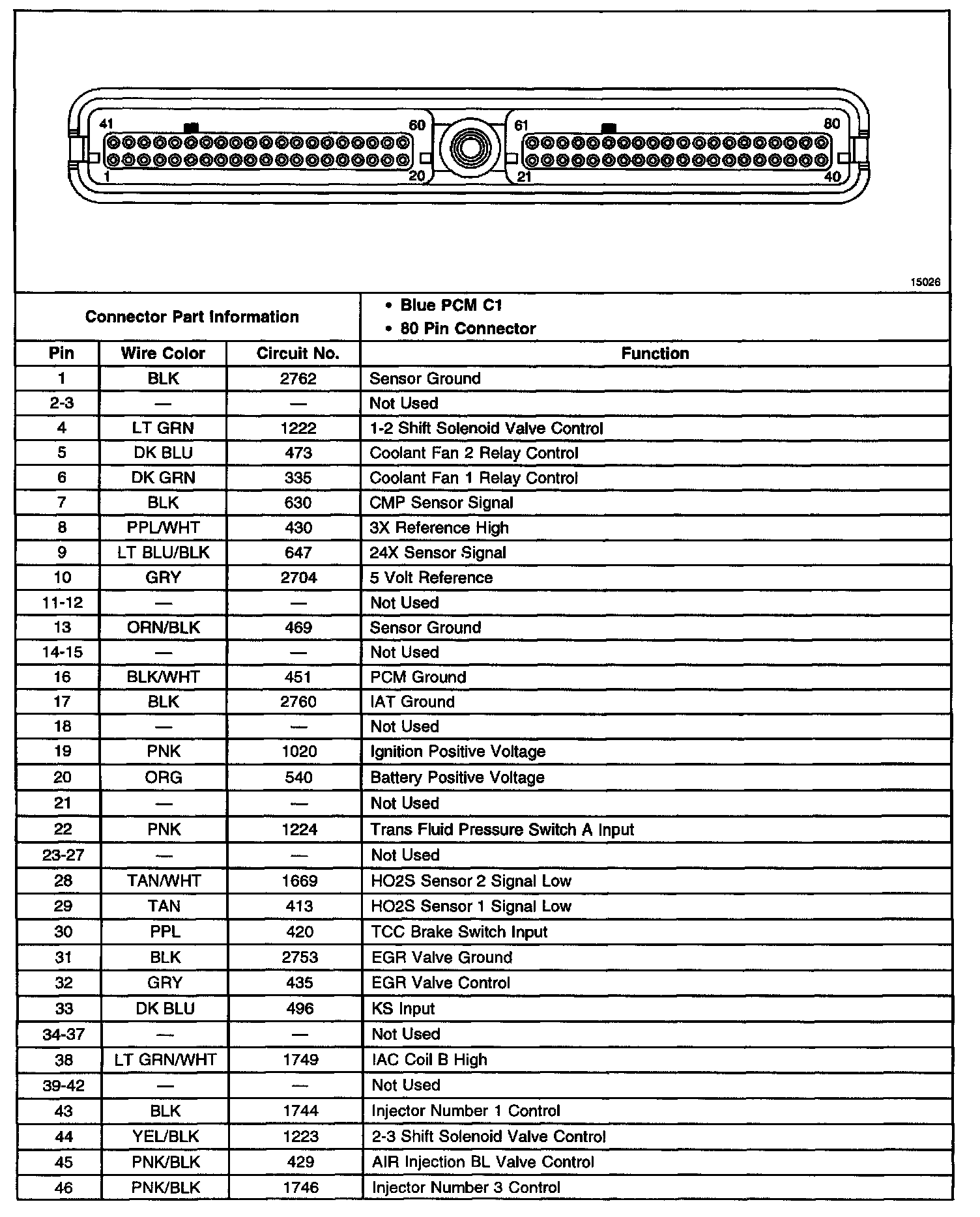 Powertrain Control Module (PCM) Connector C1 (Part 2 Of 2):