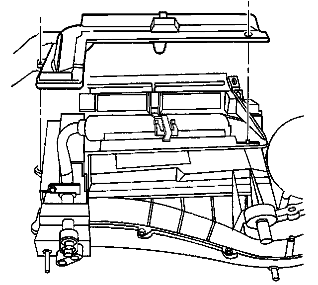 14. Install the heater core outlet cover. Refer to Heater Core Cover Replacement. Heater Case/Cover Replacement