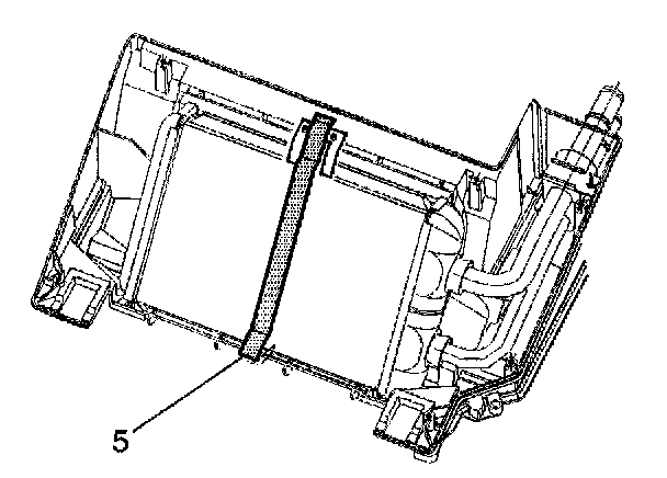 9. Remove and discard the heater core outer seal (5) from the heater core.