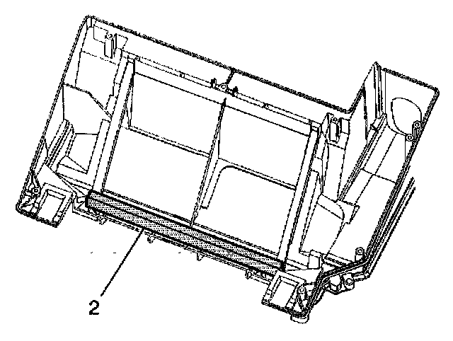 3. Install a new heater core upper seal (2) to the HVAC module case.