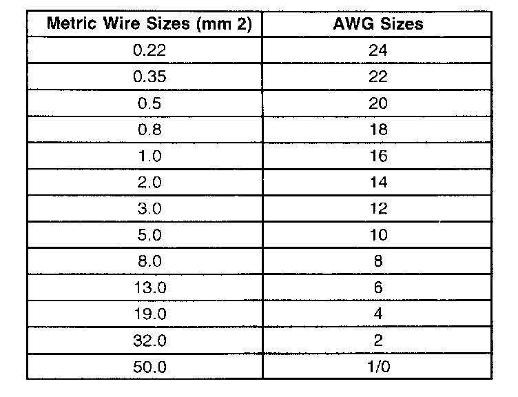 Wire Size Conversion Table: