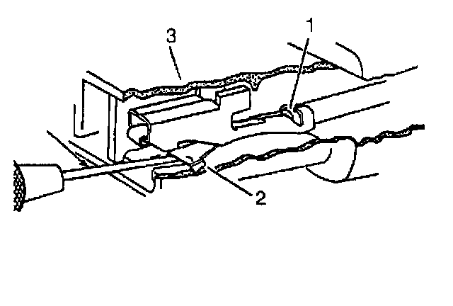 4. Grasp the wire at the back of the connector body and gently pull the terminal (1) from the connector body (3).