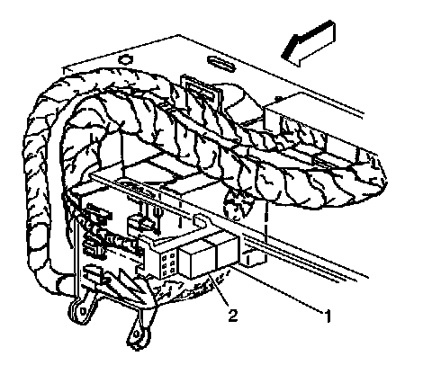 1. Install the rear window Defogger timer/relay (2) into the relay block (1).