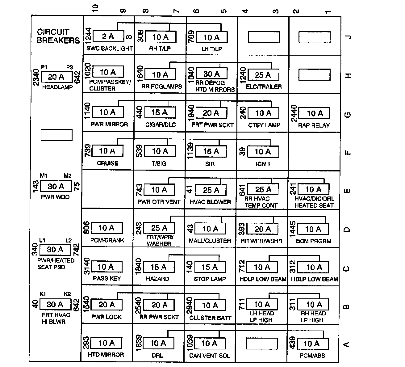 Fuse Block Application Table (Part 2 Of 2):