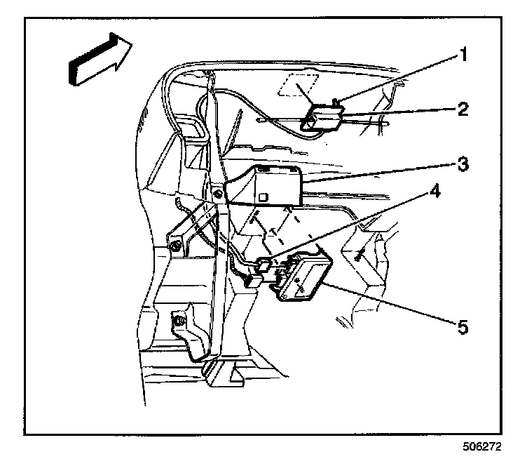 3. Disconnect the remote keyless entry electrical connector (4) from the receiver (5).