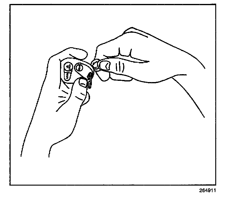 1. Insert a small coin between the two halves of the transmitter case at the slot provided near the key ring hole.