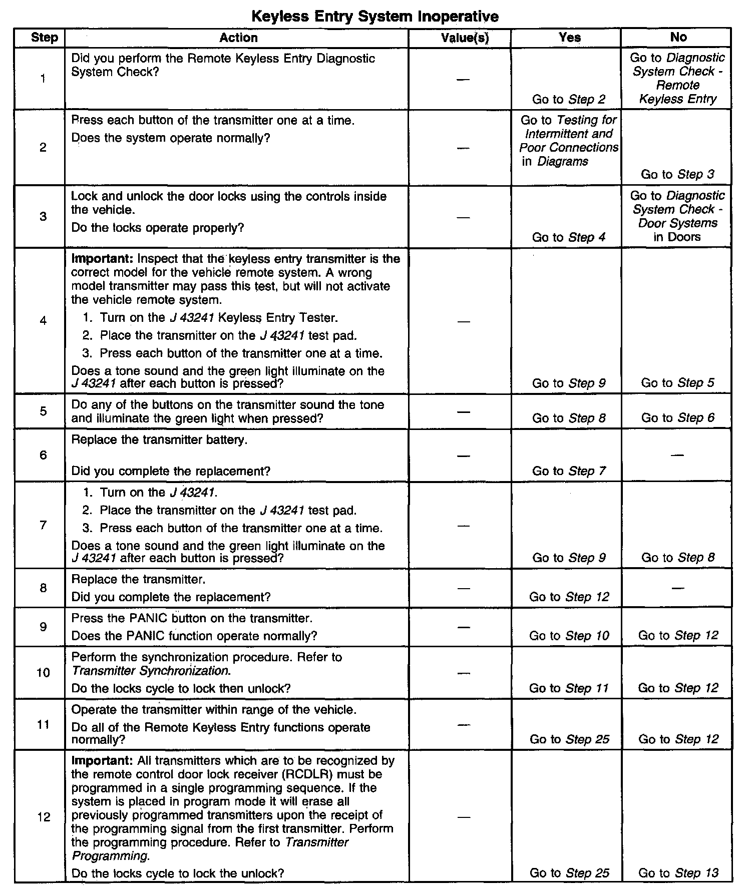 Keyless Entry System Inoperative