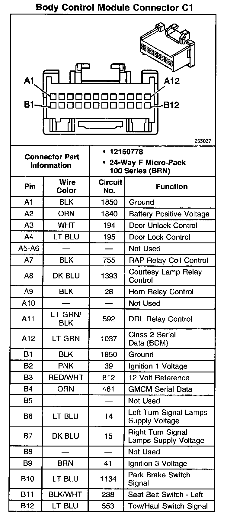 Body Control Module Connector C1: