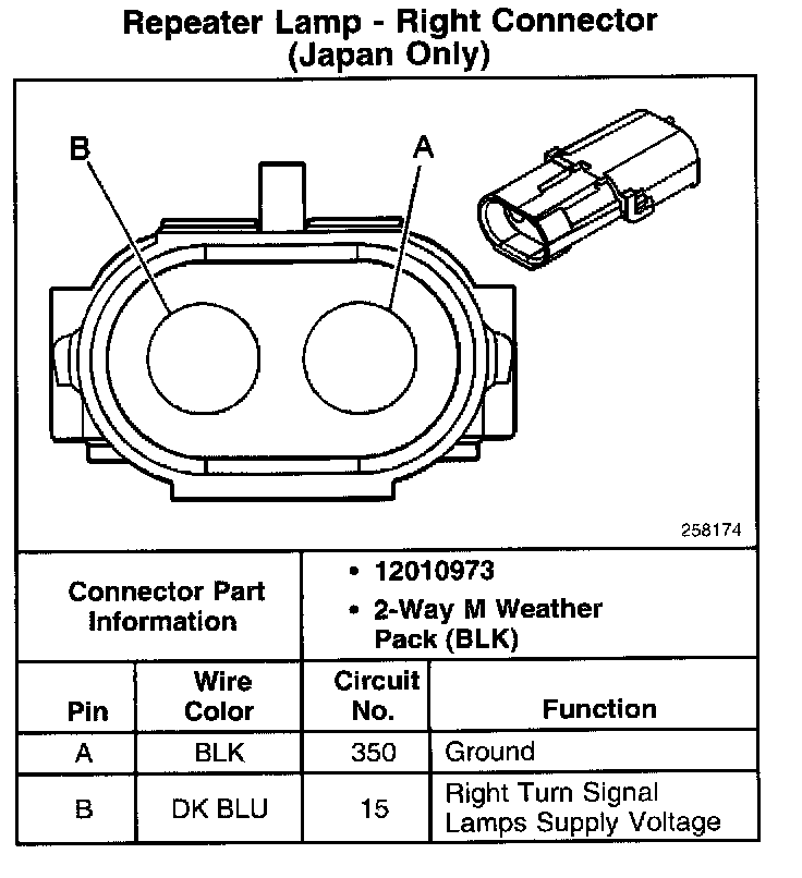Repeater Lamp - Right Connector (Japan Only):