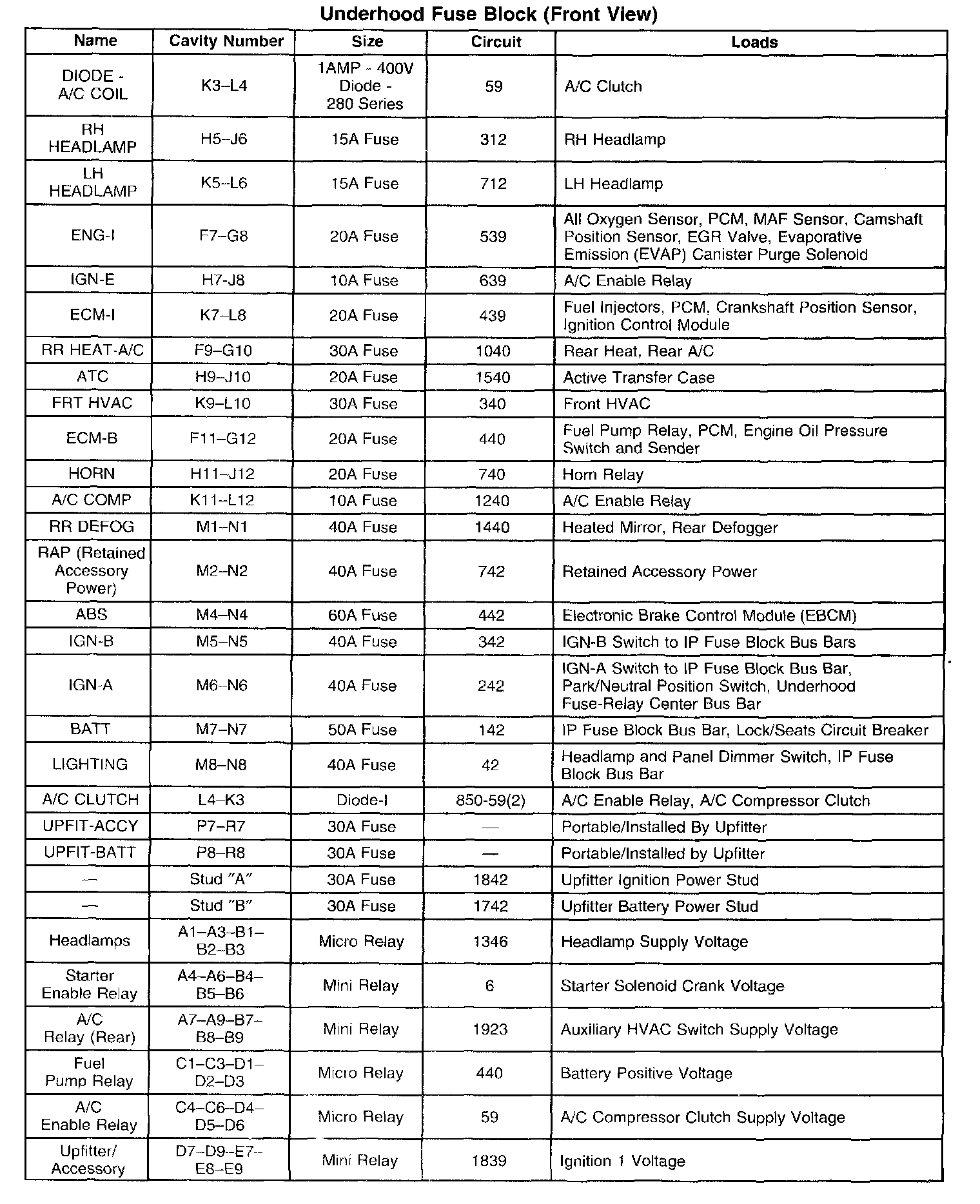 Underhood Fuse Block (Front View) (Part 2 Of 2):