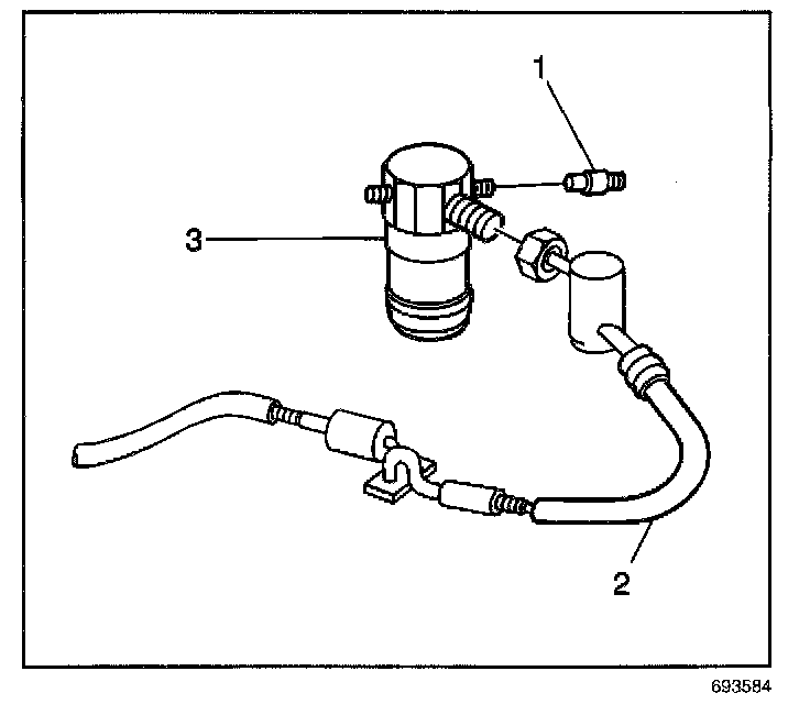 2. Remove the A/C low pressure switch (2) from the accumulator (3).