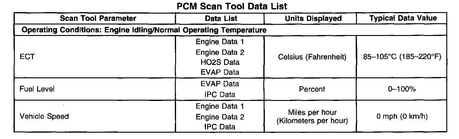 Scan Tool Data List - Powertrain Control Module (PCM)