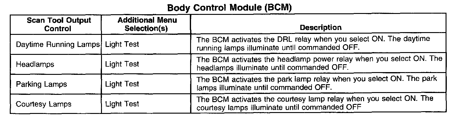 Scan Tool Output Controls - Body Control Module (BCM)